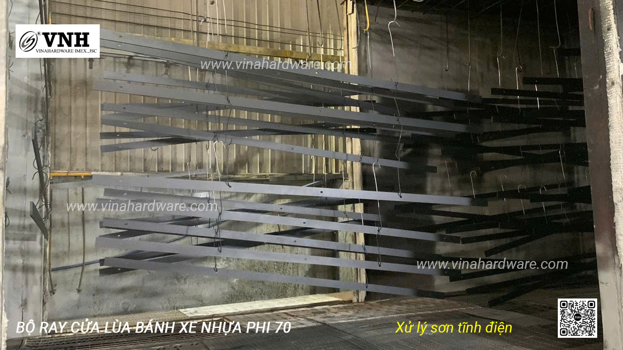 Bánh xe kết hợp chung với thanh ray cửa lùa bánh xe nhựa phi 70 - VNH0012371 - 1905mm- sơn đen cát để tạo thành 1 bộ hoàn chỉnh