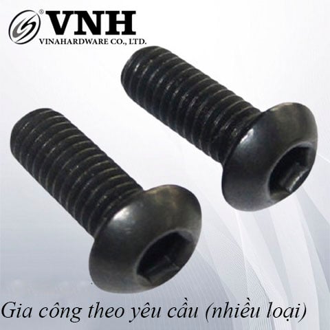 + Được cấu tạo bởi phần đầu được bo tròn và cong xuống giống chiếc dù và được in hình lục giác chìm trên đỉnh đầu, phần thân được tiện ren.
