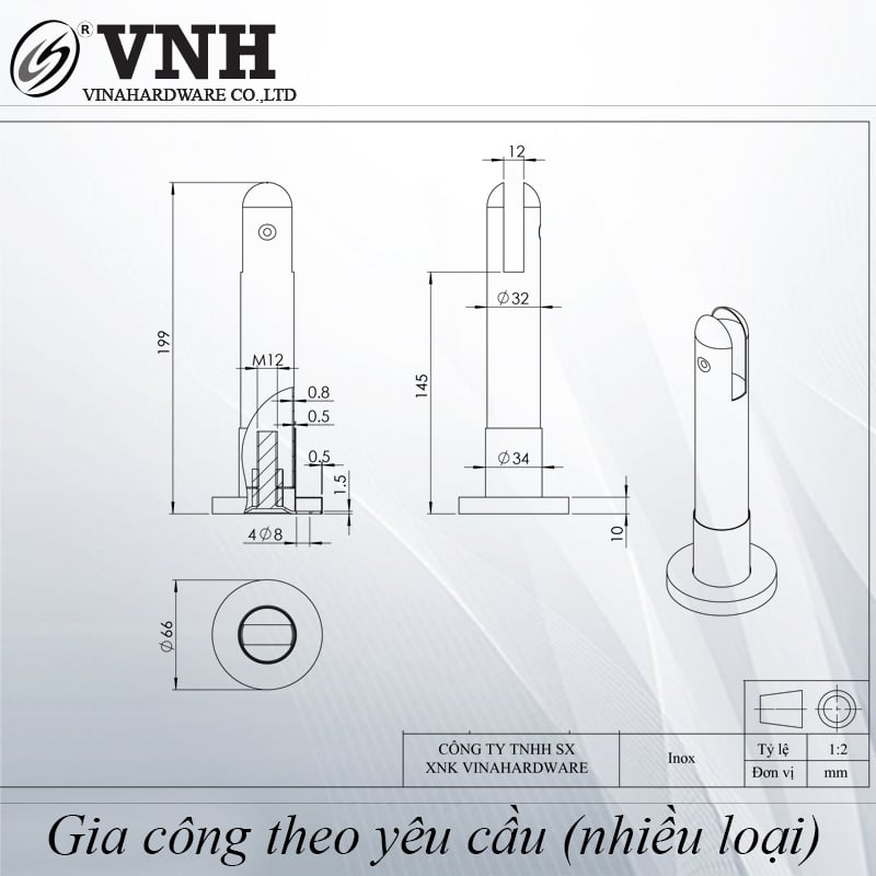Bản vẽ chi tiết sản phẩm loại 195x32x12mm