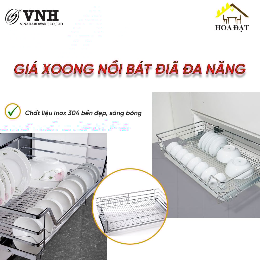 Giá xoong nồi bát đĩa đa năng Inox 304 cao cấp ray trượt âm tủ rộng