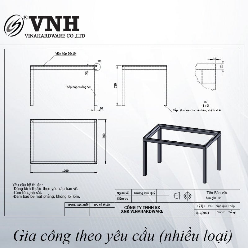 Bản vẽ chi tiết sản phẩm Khung bàn sắt, sơn đen