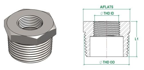 Kích thước Inch | THD OD | THD OD | THD ID | THD ID | A / FLATS | L1 | Mã phần |