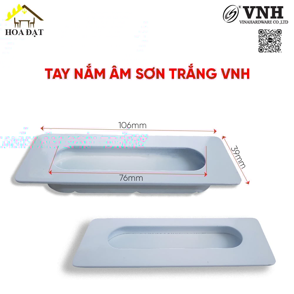 Tay nắm âm ngăn kéo tủ 38x106mm sơn trắng HD0436