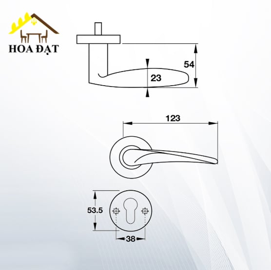 - Trọn bộ gồm : 2 tay nắm gạt, 1 bộ nắp chụp tay nắm, 1 bộ nắp chụp ruột khóa PC, 1 bộ vít