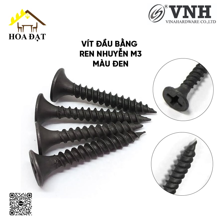 Vít đầu bằng răng nhuyễn M3, màu đen-ZS0315B - M3x15mm