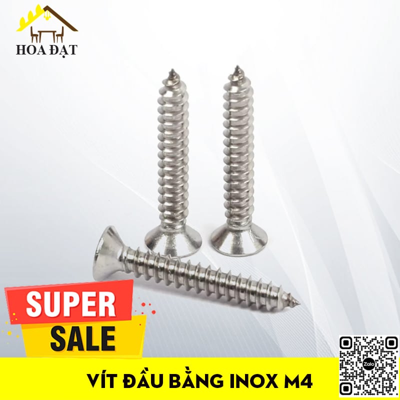 Vít đầu bằng răng nhuyễn M4, inox 304 - HDSB329-ZS420I - M4x20mm