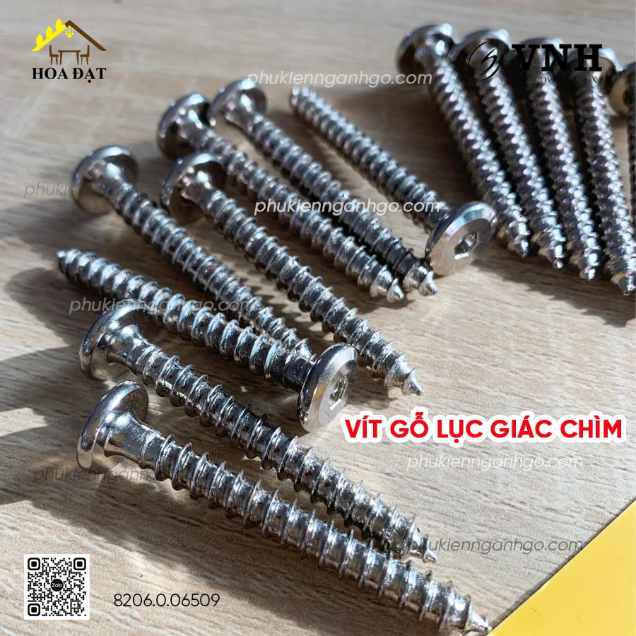 Vít gỗ lục giác chìm 6x50mm màu nikel, VGLGC650N-VGLGC650N